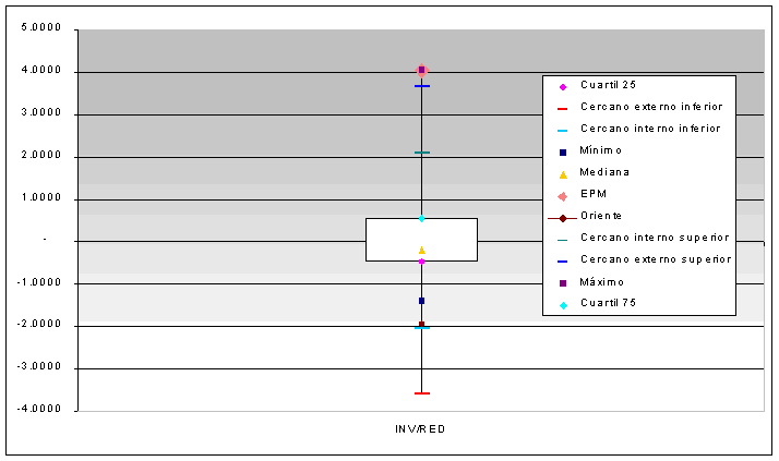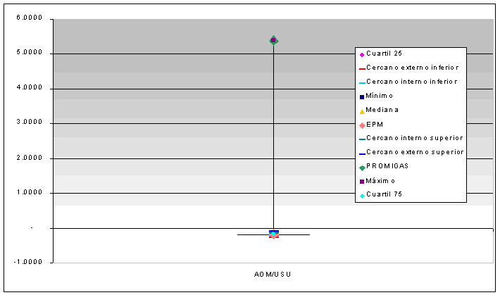 Como se observa en el gráfico anterior, Promigas está por encima del Cercano externo superior, por tanto se considera como un outlier extremo.