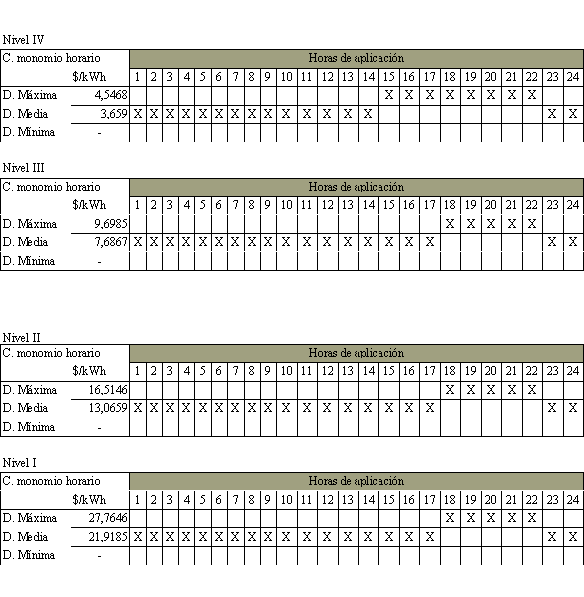 Artículo 2°. Cargos monomios horarios. Los cargos monomios horarios por uso del Sistema de Transmisión Regional y/o Distribución Local operado por la Electrificadora del Atlántico, serán los siguientes, a pesos de diciembre de 1996: