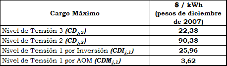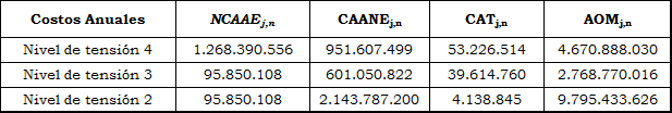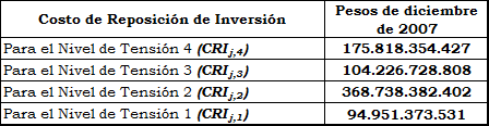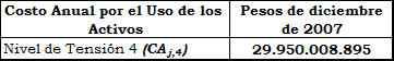 Teniendo en cuenta lo expuesto, para los niveles de tensión 4, 3 y 2 se obtienen las siguientes variables, expresadas en pesos de diciembre de 2007: