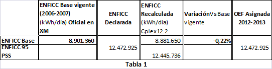 En estas condiciones encuentra la CREG que el parámetro declarado por el agente y glosado por SEDIC, no condujo a una mayor asignación de ENFICC.