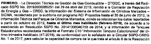 “En atención a su comunicación del radicado del asunto, mediante la cual solicita la información del SICMA, reporte de cilindros al SUI y tanques estacionarios para calcular la capacidad de compra de la que trata el artículo 8 de la Resolución CREG 063 de 2016, modificado por el artículo 1 de la Resolución CREG 180 de 2017, aplicable al segundo semestre de 2019 y considerando lo señalado en el Radicado 201920000284701 de fecha Abril de 2019, mediante el presente escrito estamos enviando la información obtenida de las bases de datos disponibles en el Sistema Único de Información — SUI, en los siguientes términos: