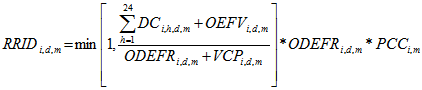 La remuneración real individual diaria de la Obligación de Energía Firme respaldada por la planta o unidad de generación i en el día d del mes m (RRIDi,d,m) se calculará de acuerdo con la siguiente fórmula: