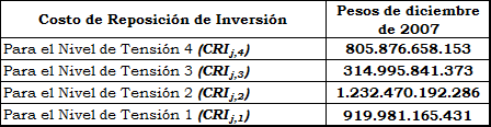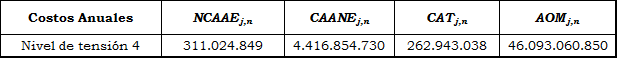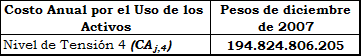 Teniendo en cuenta lo expuesto, para el nivel de tensión 4 se obtienen las siguientes variables, expresadas en pesos de diciembre de 2007: