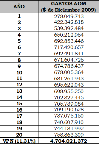 Valor Presente de los gastos de AOM, con nivel de eficiencia | 4.704.021.372 |