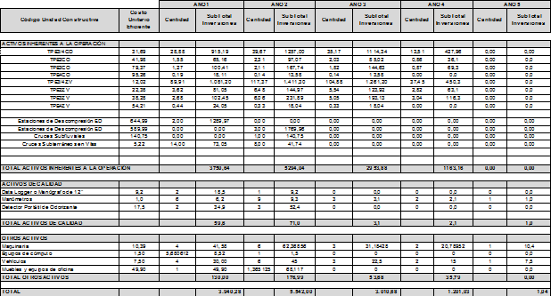 La solicitud tarifaria presentada por la empresa incluye las proyecciones de demanda, las proyecciones de gastos de AOM de distribución y el Programa de Nuevas Inversiones, clasificadas según el listado de unidades constructivas establecido en el Anexo No. 1 de la Resolución CREG 011 de 2003.