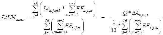 DAn,m,a: Diferencia de ingresos acumulada de la ADD a, en el Nivel de Tensión n, en el mes m, actualizado con el IPP del mes m-1. Cuando Q = 1 este valor acumulado será incluido en el cálculo del cargo unificado y para el mes siguiente, la variable DAn,m,a será igual a cero y se reiniciara la acumulación de las diferencias de ingresos.