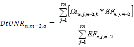 DtUNRn,m-2,a: Cargo por Uso Único del Nivel de Tensión n (con n= 1, 2 ó 3), revisado para el mes m-2 en la ADD a