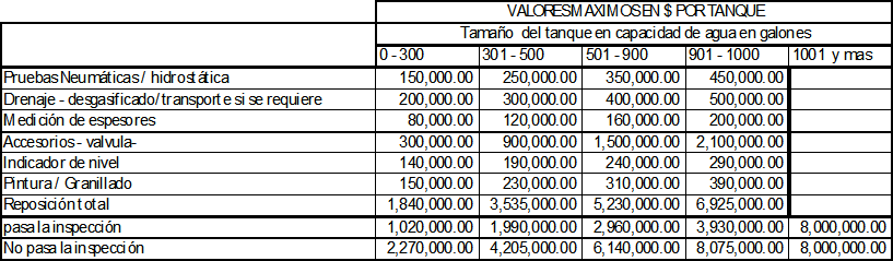 ARTICULO 14º. Presupuesto para la ejecución del Programa de Mantenimiento y Reposición de Tanques Estacionarios. Los valores máximos a ejecutar para la ejecución del Programa de Mantenimiento y Reposición de Tanques Estacionarios, con base en los cuales el Comité Fiduciario emitirá las Disponibilidades Presupuestales de las cuales trata el Artículo 36 de la Resolución CREG 045 de 2008, serán los siguientes de acuerdo con cada concepto indicado: