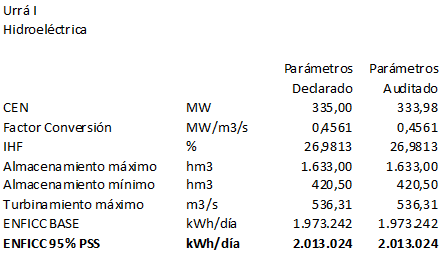Los siguientes son los resultados del informe de verificación de parámetros de PwC AG sobre la planta y/o Unidad de Generación URRÁ I, los cuales le permiten expresar que el valor reportado para el parámetro de Capacidad Efectiva Neta Planta Hidráulica, presenta una discrepancia: