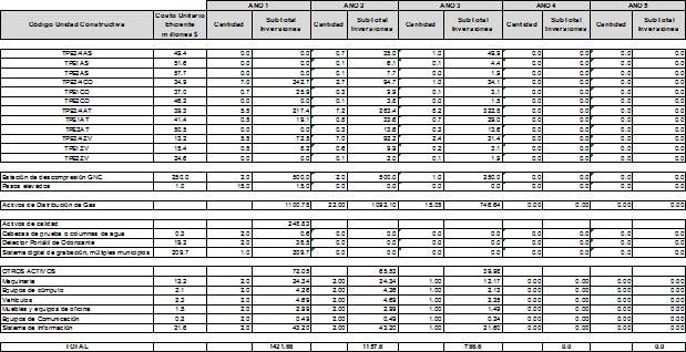 La Empresa, mediante la comunicación en cita reportó a la CREG las proyecciones de demanda, las proyecciones de gastos de AOM de distribución y el programa de nuevas inversiones, clasificadas según el listado de unidades constructivas establecido en el Anexo No. 1 de la Resolución CREG 011 de 2003.