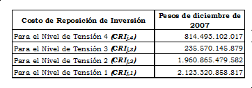 “Artículo 5. Costos de reposición de la inversión. Los costos de reposición de la inversión del OR CODENSA S.A E.S.P. para cada nivel de tensión, calculados en la forma establecida en la Resolución CREG-097 de 2008, son los siguientes: ”
