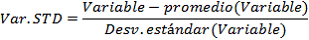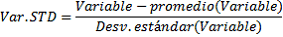 ii. Con excepción de las variables TEMPER y RELIEVE, se determina el promedio y la desviación estándar del resto de variables. Esas variables restantes se normalizan o transforman utilizando la siguiente ecuación: