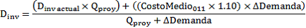 ( ) corresponde a la componente que remunera la inversión de la empresa del cargo medio de distribución aprobado al mercado relevante conforme a la metodología de la Resolución CREG 011 de 2003, actualizado a la fecha base sin considerar el factor de productividad.
