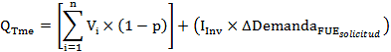 | Volumen de gas expresado en metros cúbicos (m3) que se agrega a la demanda residencial del mercado por efecto de la aplicación del factor de uso eficiente “FUE” conforme a lo establecido en el numeral 9.8 y el ANEXO 19 de la presente resolución. |