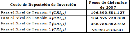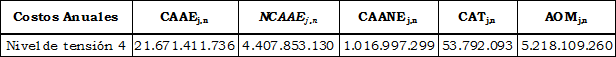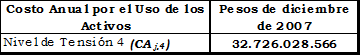 Teniendo en cuenta lo expuesto, para el nivel de tensión 4 se obtienen las siguientes variables, expresadas en pesos de diciembre de 2007: