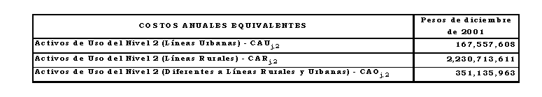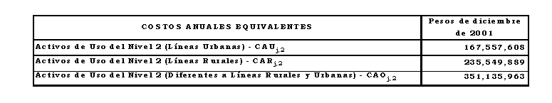 Costo anual para remunerar los activos del Nivel de Tensión 2, aplicando los criterios de eficiencia de que trata el Anexo No 8 de la Resolución CREG 082 de 2002 y los aprobados mediante Resolución CREG 030 de 2003:
