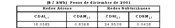 - Cargo de transición para el primer mes de aplicación del Cargo Máximo de Nivel de Tensión 2 aprobado en esta Resolución: 16.9492 $/kWh (pesos de diciembre de 2001).