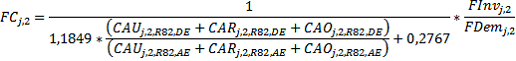 FDem j,2: Factor que muestra la relación entre i) la energía útil en el Nivel de Tensión 2, para el OR j, calculada de acuerdo con lo previsto el numeral 9.2 de este Anexo y ii) la energía útil para el mismo Nivel de Tensión, con la que se calcularon los cargos aprobados con la metodología de Resolución CREG 082 de 2002.