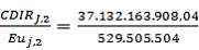El valor reportado por CREG para la variable CDIRj,2 es $37.132.163.908,04 (Col$ dic 2007), por tanto, se asume que éste valor ya está multiplicado por la EUj,2,0 que para el caso de CEO es igual a la Euj,2.