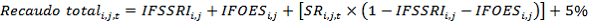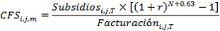 : Porcentaje de recaudo a través de subsidios del Fondo de Solidaridad para Subsidios y Redistribución de Ingresos, FSSRI, respecto de la facturación total, estimado como un promedio de los valores reales de los años y .