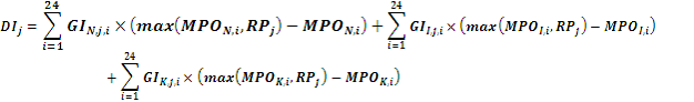 GN,j,i Generación ideal de la planta j para atender la Demanda Total Doméstica en la hora i.