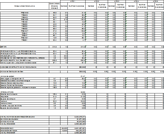 La solicitud tarifaria presentada por PROVISERVICIOS S.A. E.S.P. incluye las proyecciones de demanda, las proyecciones de gastos de AOM de distribución y el Programa de Nuevas Inversiones, clasificadas según el listado de unidades constructivas establecido en el Anexo No. 1 de la Resolución CREG 011 de 2003.