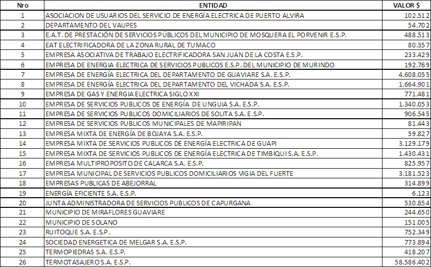 ARTÍCULO 1o.- Las siguientes entidades del sector de energía eléctrica sujetas a regulación, cancelarán el monto de la contribución especial, por el año de 2005, así: