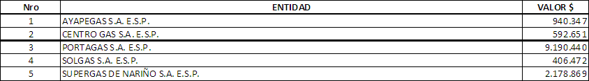 ARTÍCULO 2o.- Las siguientes entidades del sector de gas combustible sujetas a regulación, cancelarán el monto de la contribución especial, por el año de 2005, así: