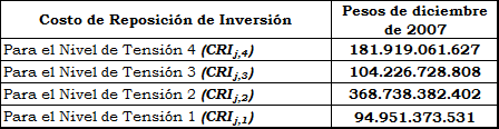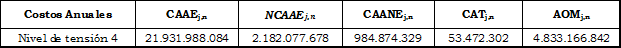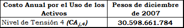 Teniendo en cuenta lo expuesto, para el nivel de tensión 4 se obtienen las siguientes variables, expresadas en pesos de diciembre de 2007: