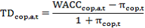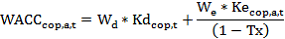 Parágrafo 1. El costo promedio ponderado de capital en pesos corrientes y antes de impuestos para la actividad a, en el momento t, está dado por la siguiente expresión: