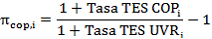 | : | Promedio de la expectativa de inflación en el momento , calculada como el promedio aritmético de los diferenciales entre las tasas, del plazo de 3650 días, de las curvas cero cupón de los títulos de tesorería TES COP y TES UVR, que se obtienen a partir de la información que es publicada por Infovalmer. Cada uno de los diferenciales se calcula de la siguiente manera: