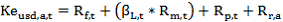 | : | Costo del capital propio en dólares, equivalente al costo del capital propio en pesos, para la actividad , en el momento . |