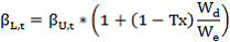 Parágrafo 4. El beta desapalancado está dado por la siguiente expresión: