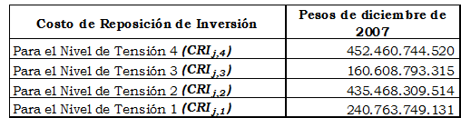 “Artículo 5. Costos de reposición de la inversión. Los costos de reposición de la inversión del OR Empresa de Energía del Pacífico S.A. E.S.P. para cada nivel de tensión, calculados en la forma establecida en la Resolución CREG 097 de 2008, son los siguientes:
