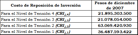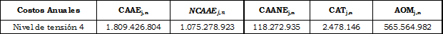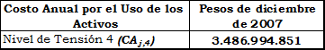 Teniendo en cuenta lo expuesto, para el nivel de tensión 4 se obtienen las siguientes variables, expresadas en pesos de diciembre de 2007: