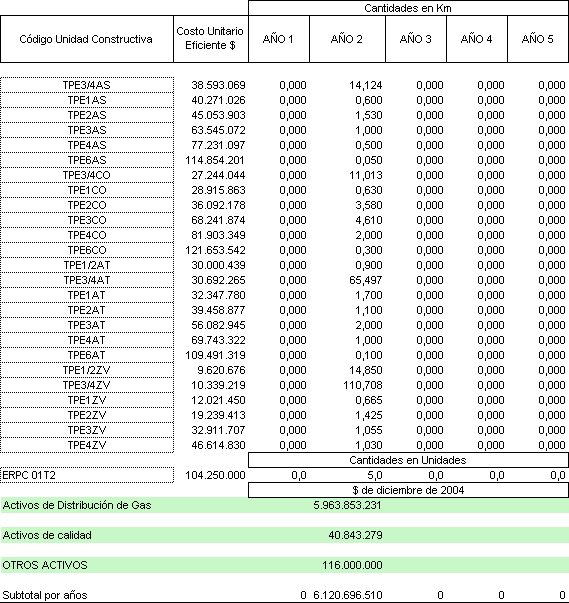 Que la solicitud tarifaria presentada por SURGAS S.A. ESP. incluye las proyecciones de demanda, las proyecciones de gastos de AOM de distribución y el Programa de Nuevas Inversiones, clasificadas según el listado de unidades constructivas establecido en el Anexo No. 1 de la Resolución CREG 011 de 2003;