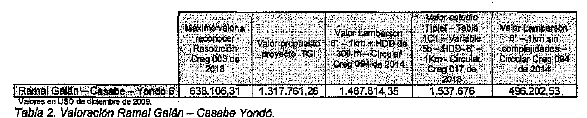 La CREG realiza una valoración de acuerdo a la metodología contenida en la Resolución 126 de 2010, no obstante, el valor de 3.963.870,9 USD obtenido por la Comisión para el gasoducto Ramal Galán - Casabe - Yondó, es inferior al presupuesto del proyecto en un 42%. Si bien la Comisión se basa en parámetros de eficiencia, no debe dejar de observarse el criterio de suficiencia financiera para el régimen tarifario de servicios públicos establecido por la Ley 142 de 1994.