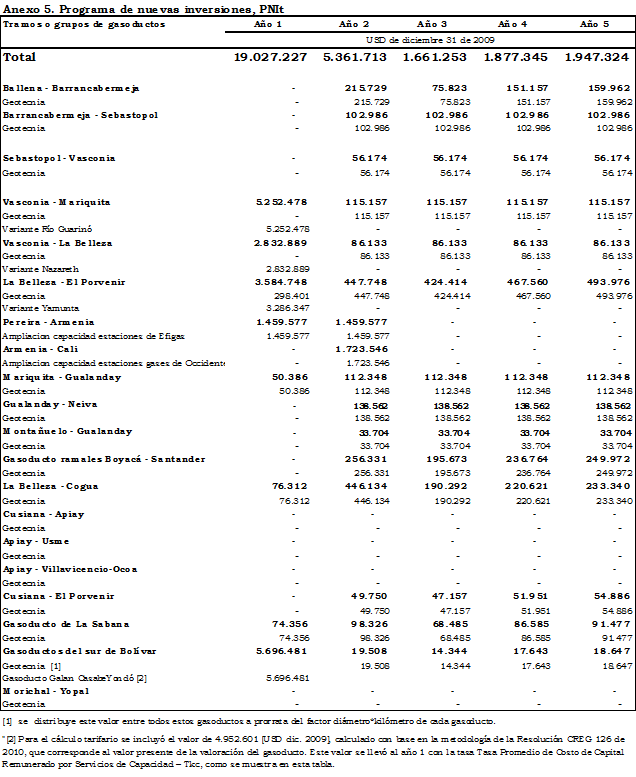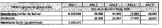 | Gasoducto de La Sabana | CF | 65,323 | 74,655 | 79,321 | 83,987 | 85,853 |
