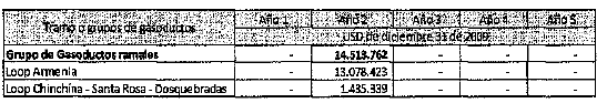 | Gasoducto de La Sabana | CF | 87,719 | 89,586 | 91,452 | 93,319 |
