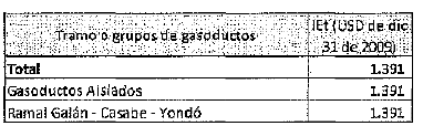 Así mismo, y como resultado del ajuste en los cargos, se dispuso que el activo existente denominado ramal Galán–Casabe–Yondó de 10, 6 y 3 pulgadas de diámetro y que hace parte de la Inversión Existente (IE), si bien ya ha cumplido su VUN y fue objeto de valoración por parte de esta Comisión en la Resolución CREG 162 de 2015, se establece que el mismo no continuaría en operación en los términos del artículo 14 de la Resolución CREG 126 de 2010 y no sería reemplazado por un gasoducto con las mismas características de aquel que fue objeto de valoración.