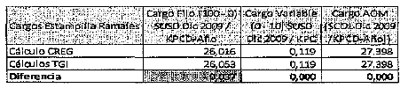 | C.V. = Cargo variable expresado en US $ de diciembre 31 de 2009 por kpc. |