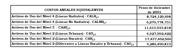 b) Costo Anual para remunerar los activos de los Niveles de Tensión 4, 3 y 2, aplicando los criterios de eficiencia de que trata el Anexo No 8 de la Resolución CREG 082 de 2002 y los aprobados mediante Resolución CREG 030 de 2003: