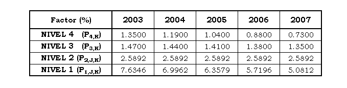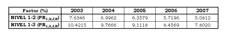 b) Factores para referir las medidas en el nivel de tensión 1 a los Niveles de Tensión 2 y 3: