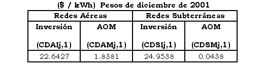 - Cargo de transición para el primer mes de aplicación del Cargo Máximo de Nivel de Tensión 2 aprobado en esta Resolución: 49.3281 $/kWh (pesos de diciembre de 2001).