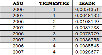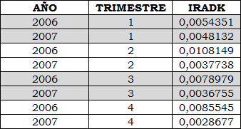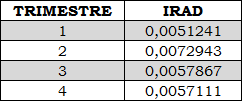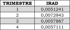 Tabla 1. IRAD por trimestre para el nivel de tensión 1.