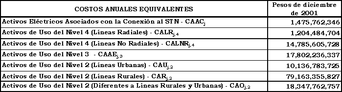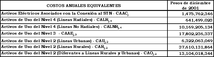a) Costo anual para remunerar los activos de conexión al STN y de los Niveles de Tensión 4, 3 y 2, sin aplicar los criterios de eficiencia de que trata el Anexo No 8 de la Resolución CREG 082 de 2002: