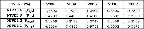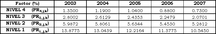 Parágrafo. Los factores de que trata el presente Artículo se aplicarán de acuerdo con la siguiente expresión:
