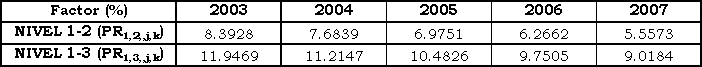 b) Factores para referir las medidas en el Nivel de Tensión 1 a los niveles de tensión 2 y 3: