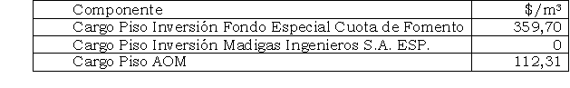 Parágrafo 1. El cargo piso aplicable en el Mercado Relevante definido en el artículo 1 se fija en $472,01/m3 (pesos de diciembre de 2007) desagregado de la siguiente manera: