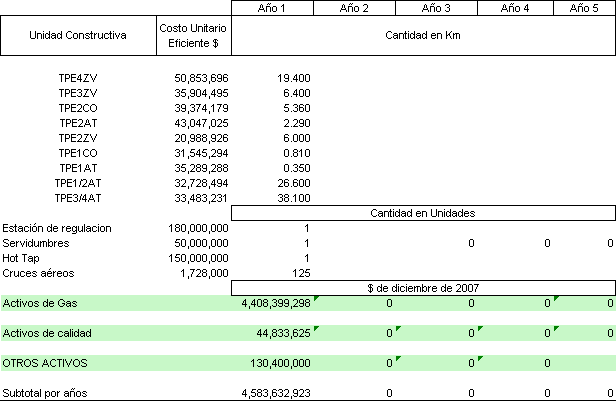 La Comisión de Regulación de Energía y Gas efectuó los cálculos tarifarios correspondientes a partir de la metodología establecida en la Resolución CREG-011 de 2003 y demás información disponible en la Comisión, los cuales se presentan en el Documento CREG-064 de 2010.